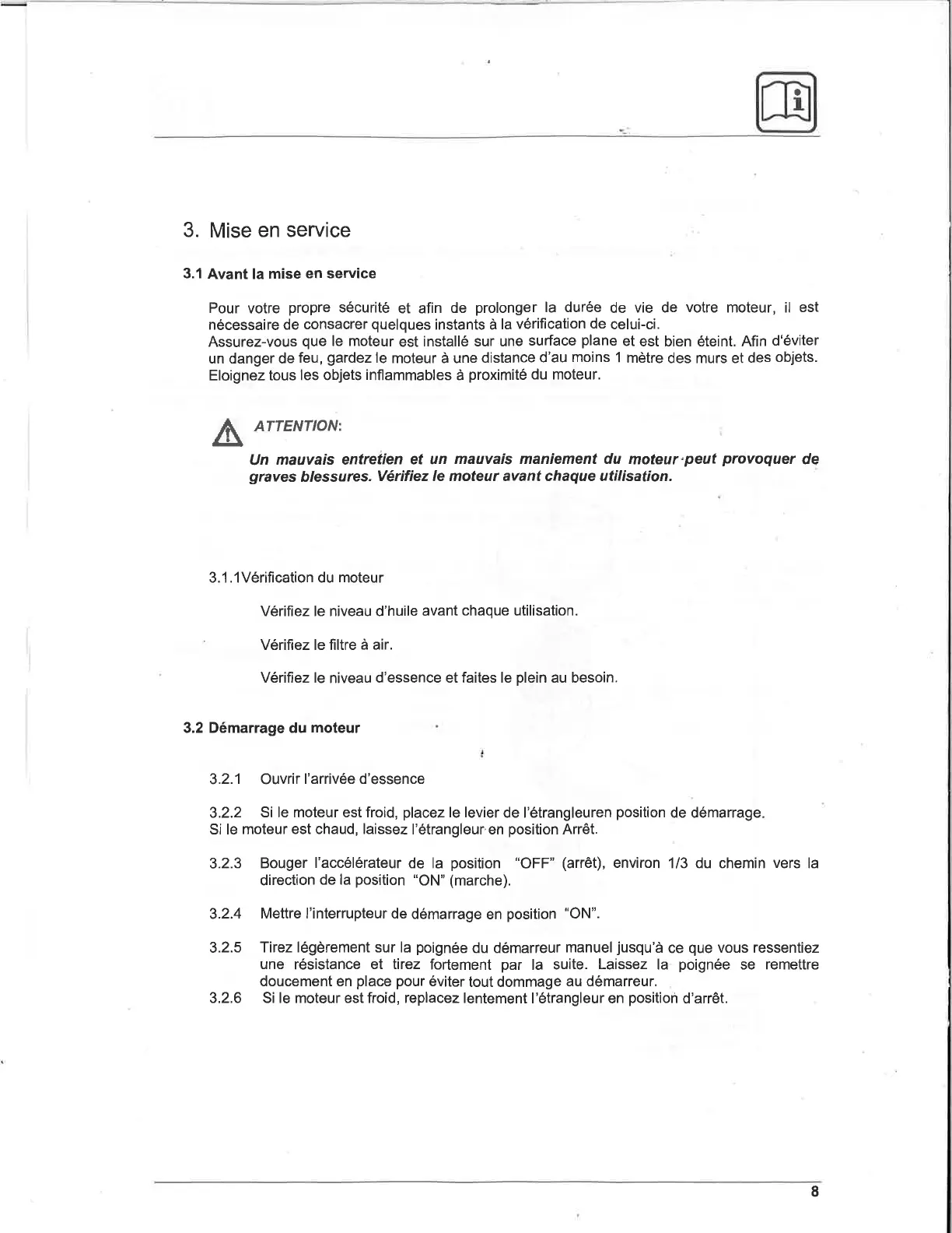 3.2 Démarrage du moteur