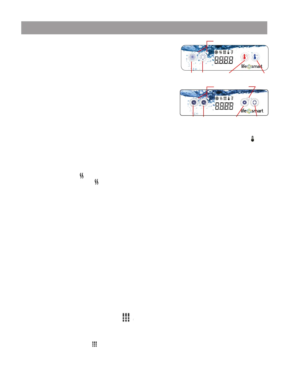 de la touche enfoncée. Après cinq secondes, l'écran LCD affiche automatiquement la température actuelle du spa.