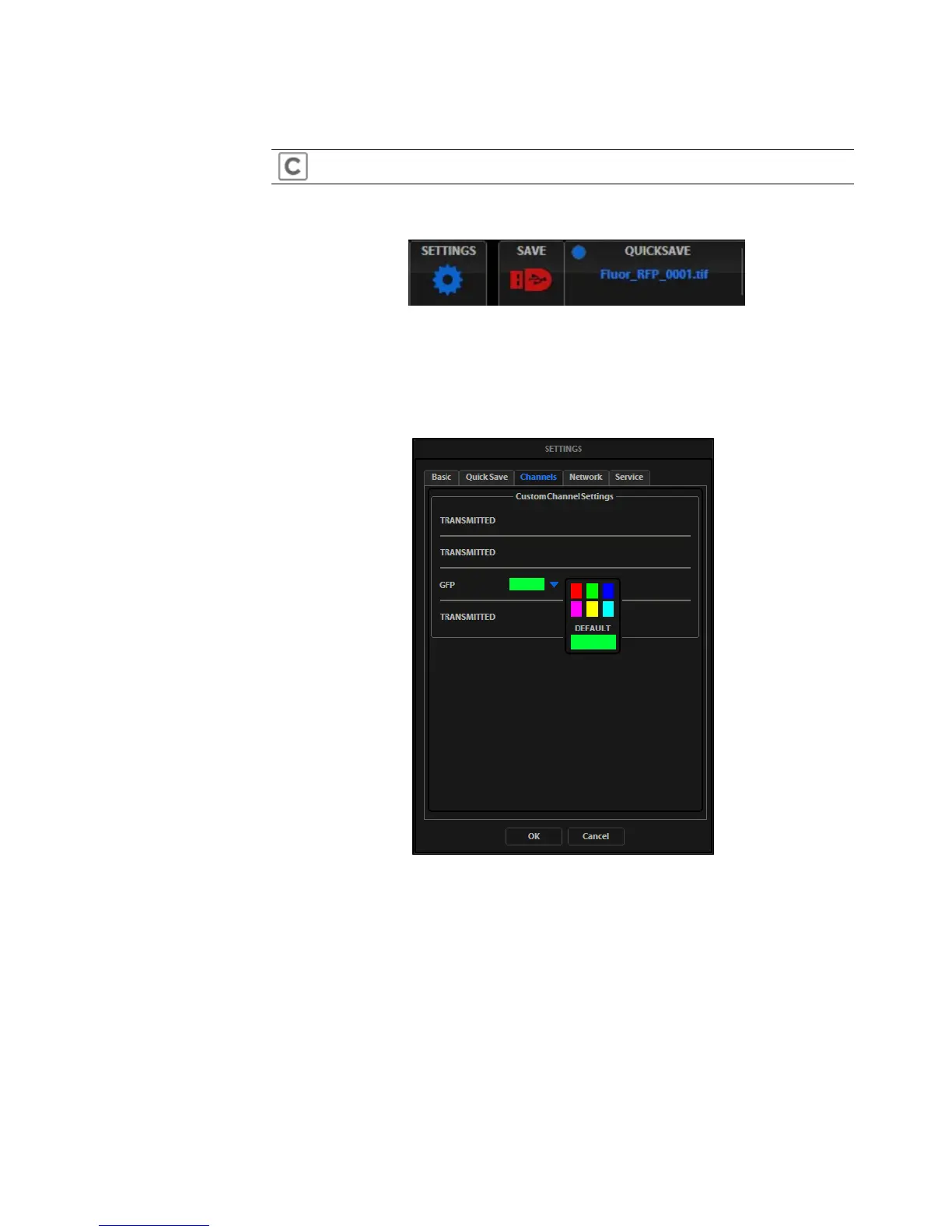 take effect with the next image acquired in the customized channel.
