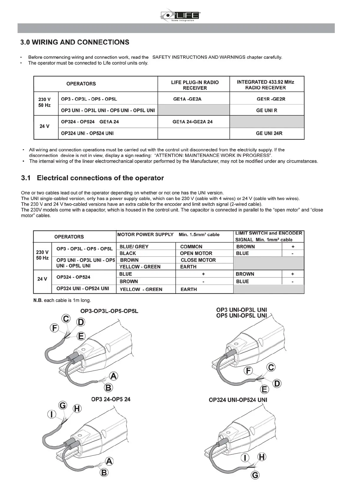 Life Optimo OP3 UNI - Wiring and Connections; Electrical Connections
