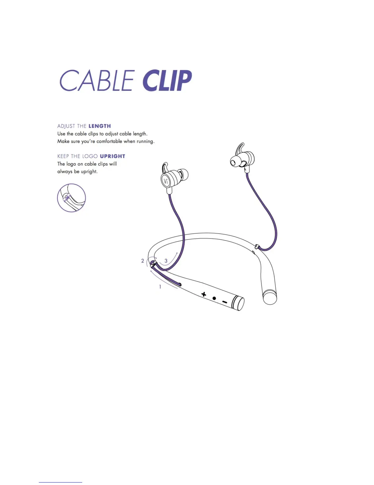 lifeBeam Vi - Cable Clip; Adjust Cable Length; Logo Orientation