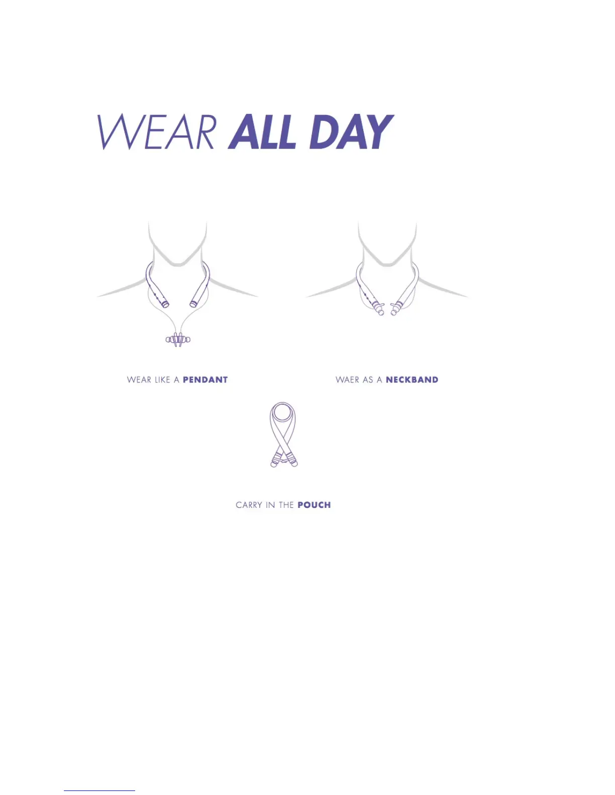 lifeBeam Vi - Wear All Day; Wearing as a Pendant; Wearing as a Neckband; Carrying in Pouch