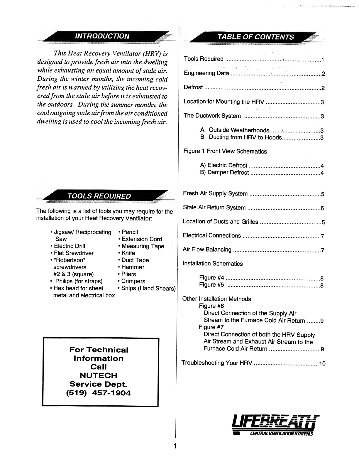 Lifebreath 150MAX - Introduction; Tools Required