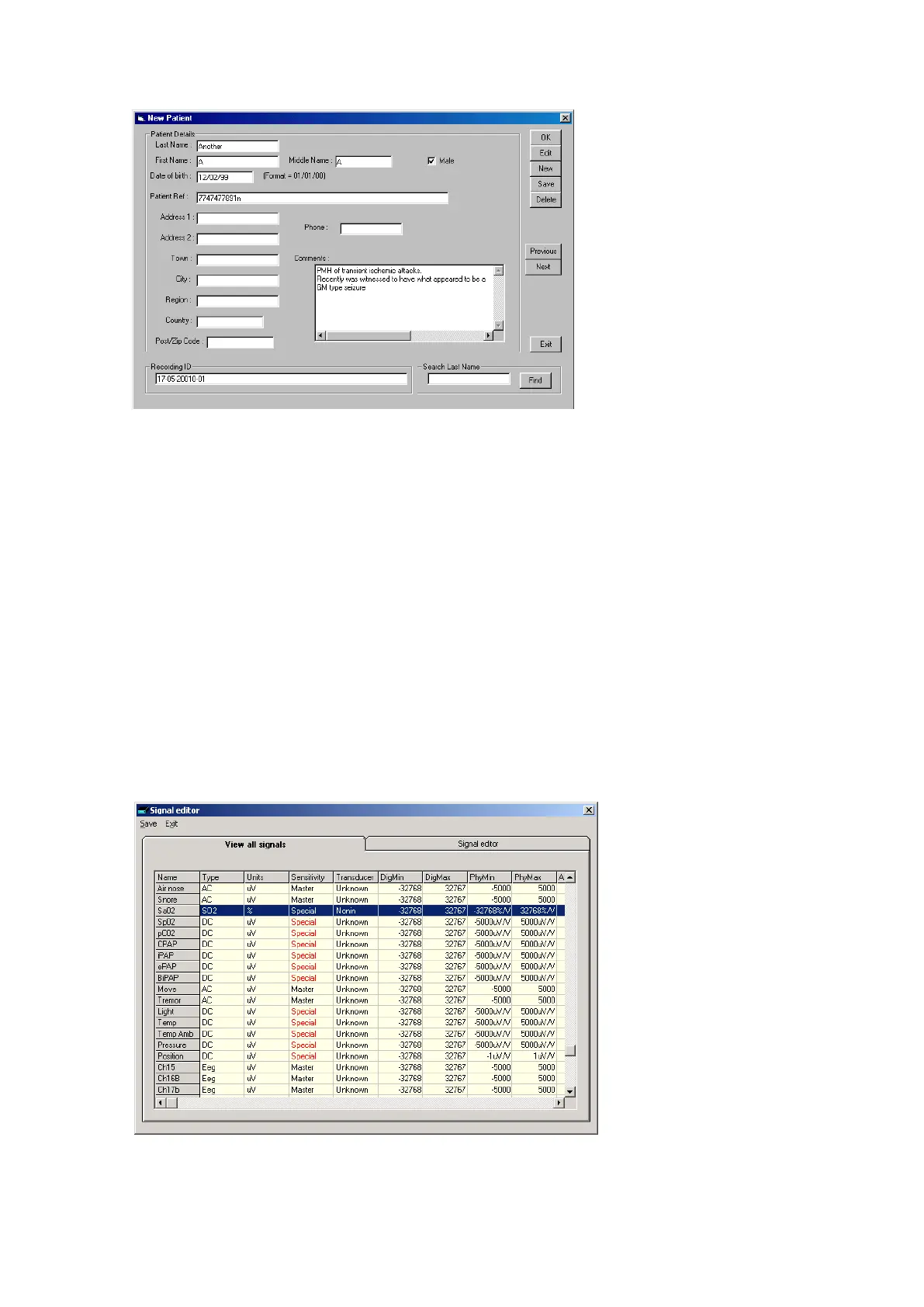 The database allows you to ent er m ore extensive inform at ion about t he pat ient and recording, and
