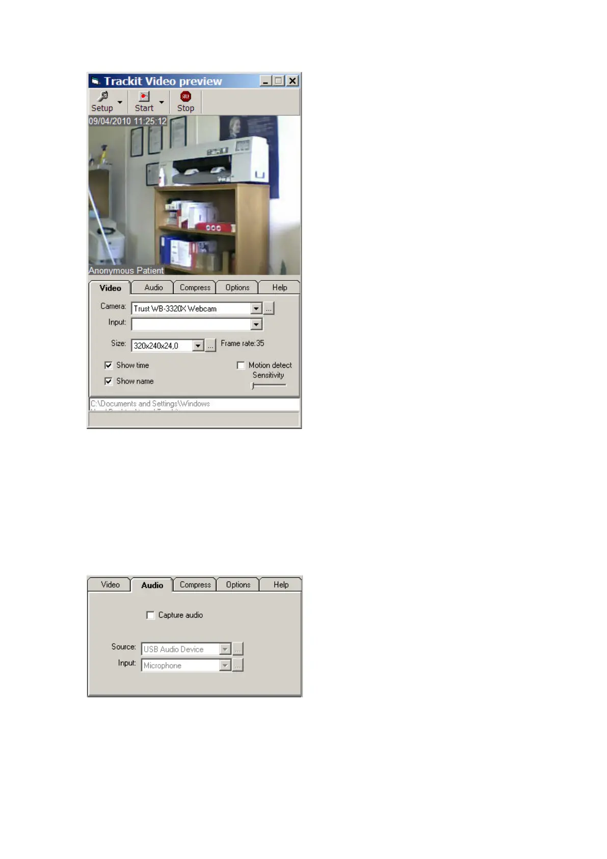 The Audio tab allows an opt ional m icrophone t o be select ed.