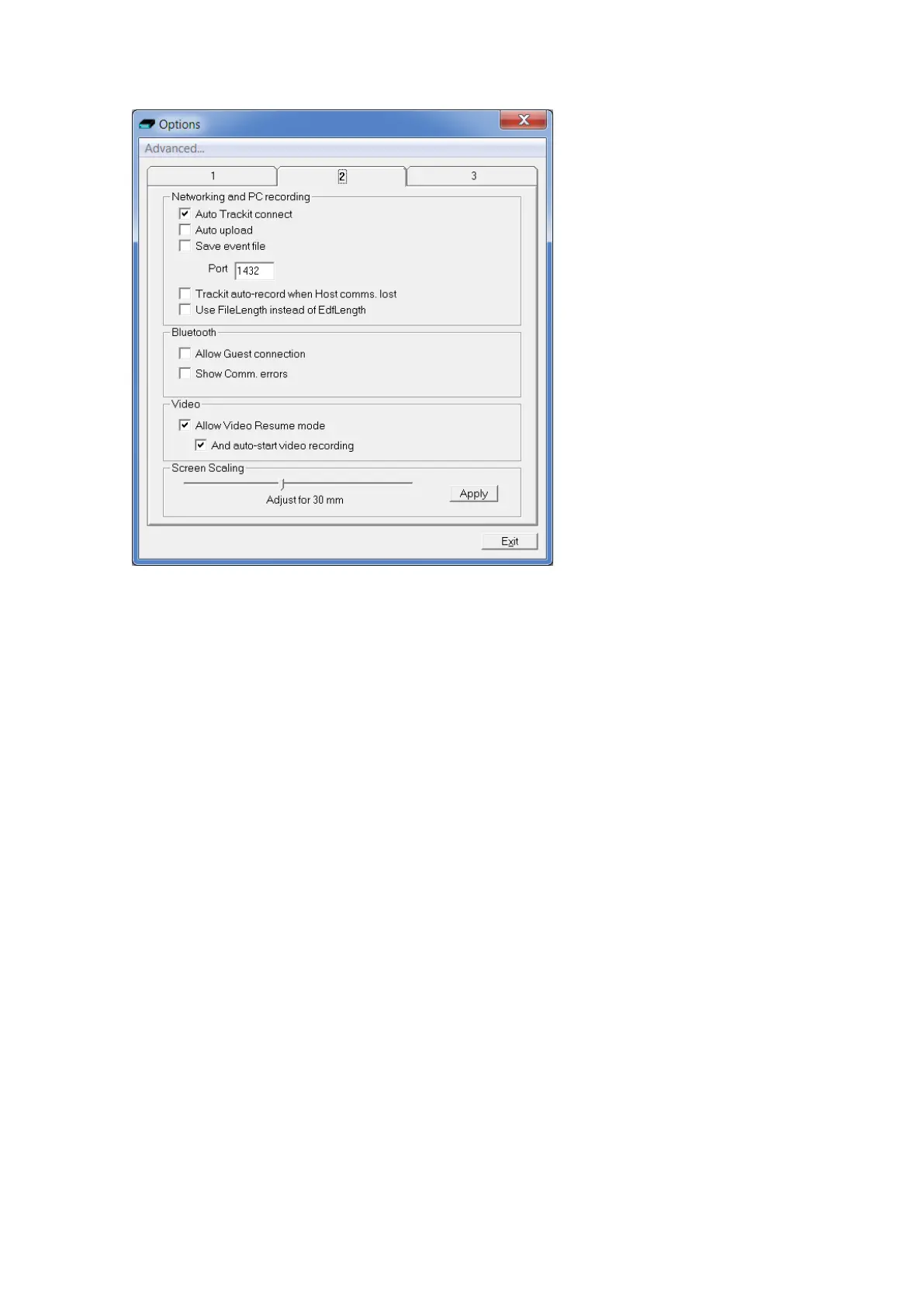 • Save Event File. I f ticked this will cause the application t o autom atically upload the Trackit ’s