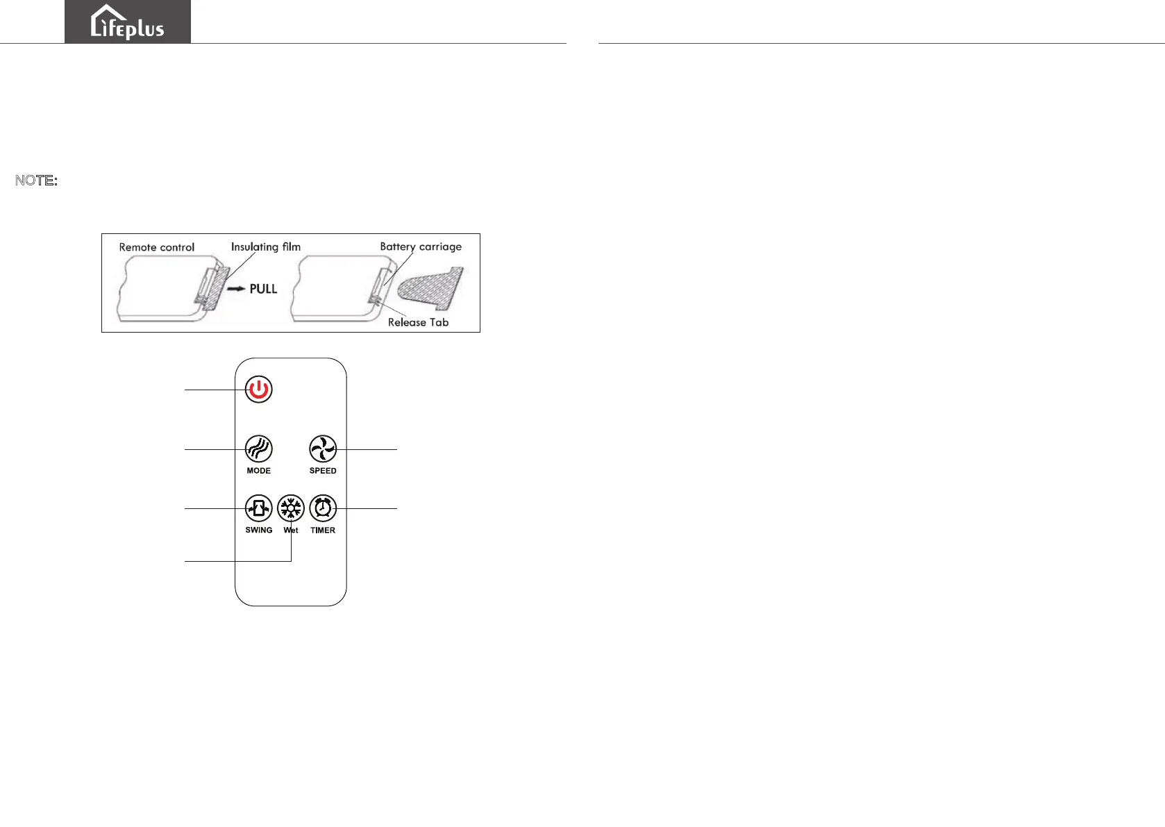 Remove the plastic insulation film located underneath the battery before using the remote.