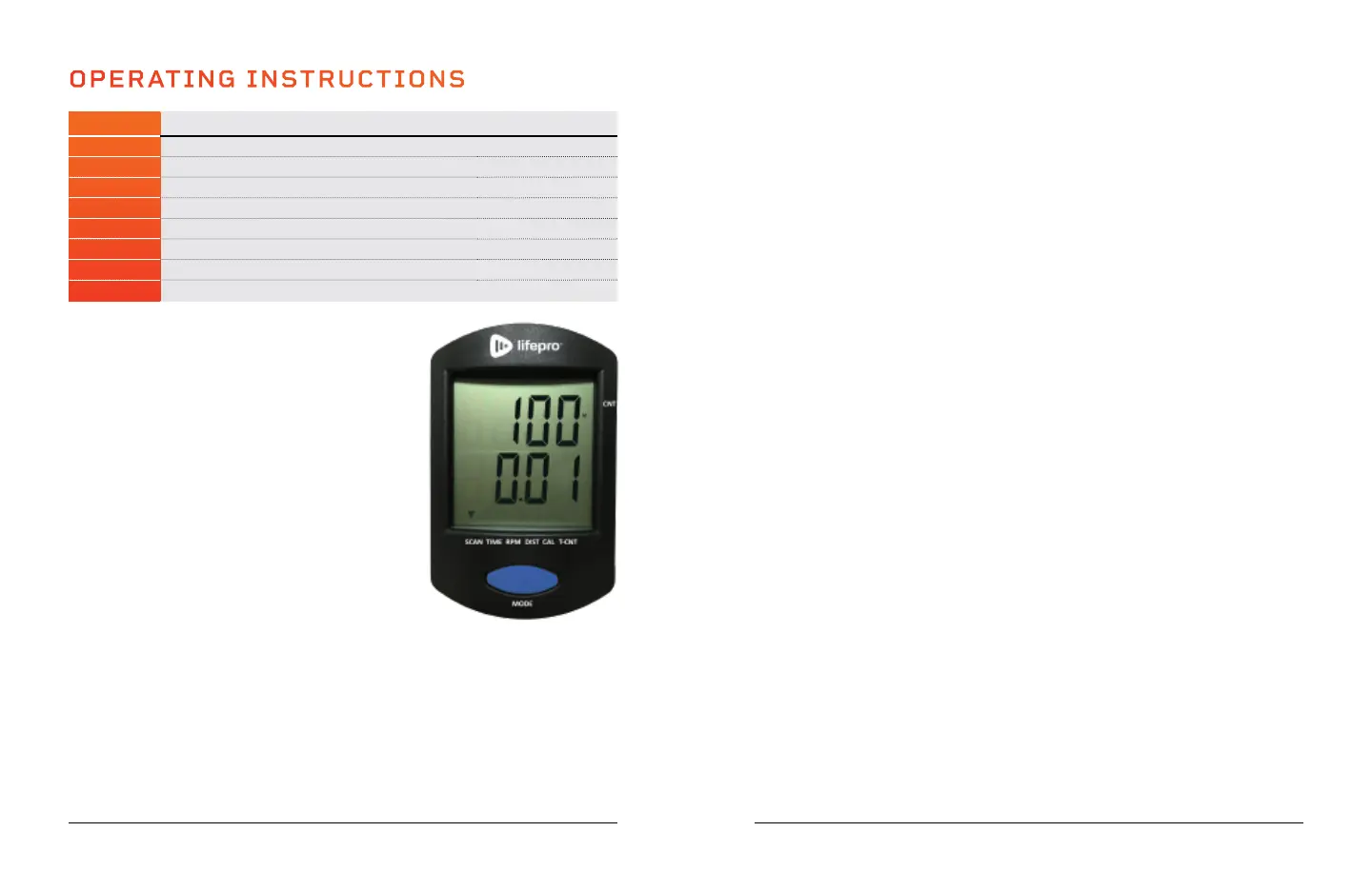 the modes: scan, time, RPM, distance, calories,