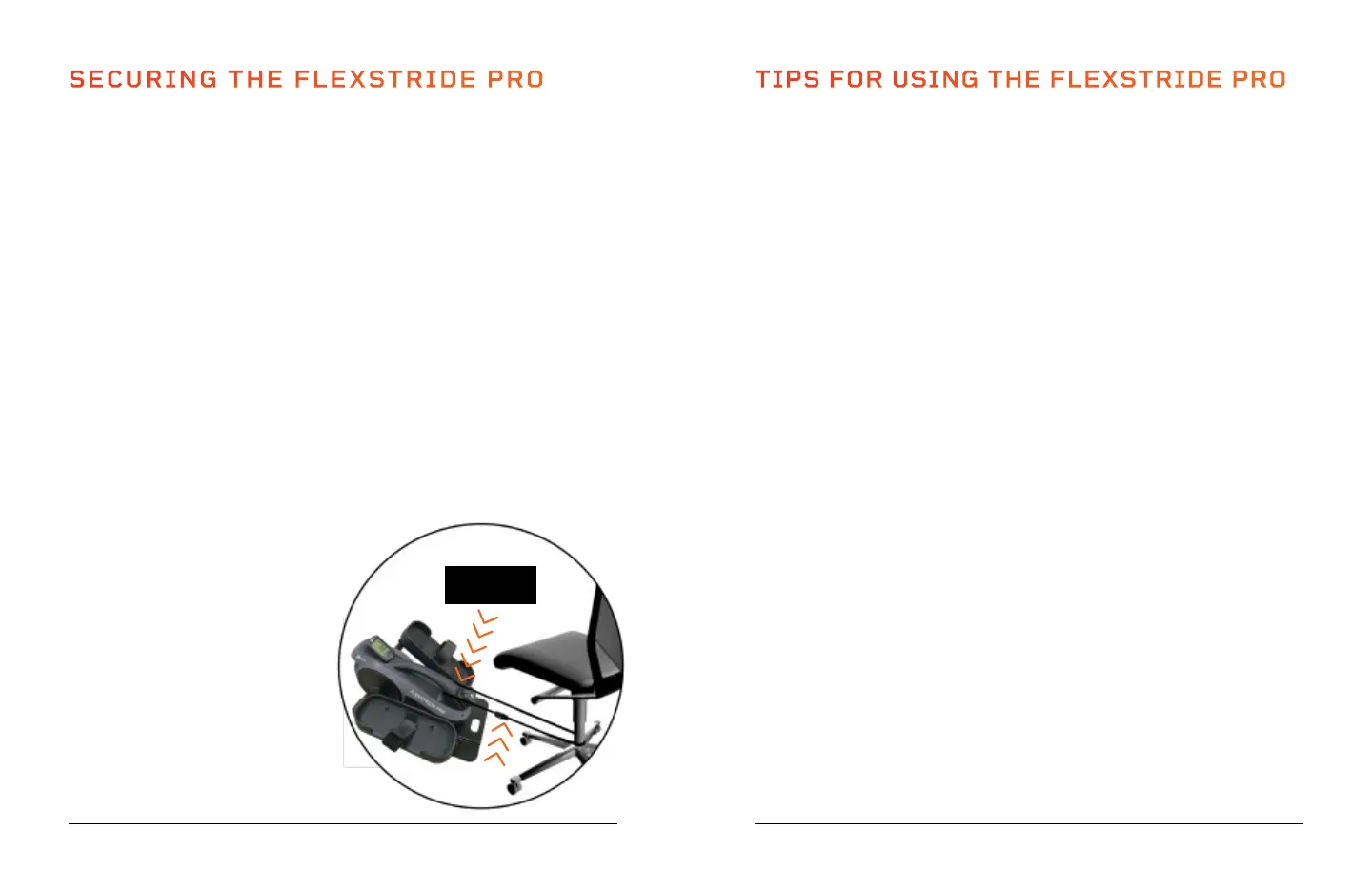 to a chair. Most users will NOT need to tether the FlexStride Pro; pedaling