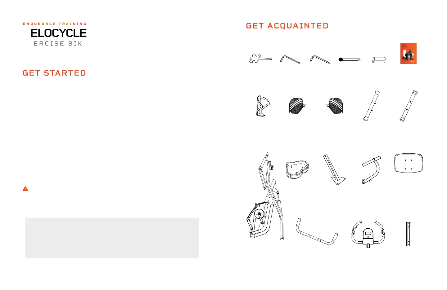 NOTE: Assemble the bike on a flat surface at least 6-by-6-foot, free of