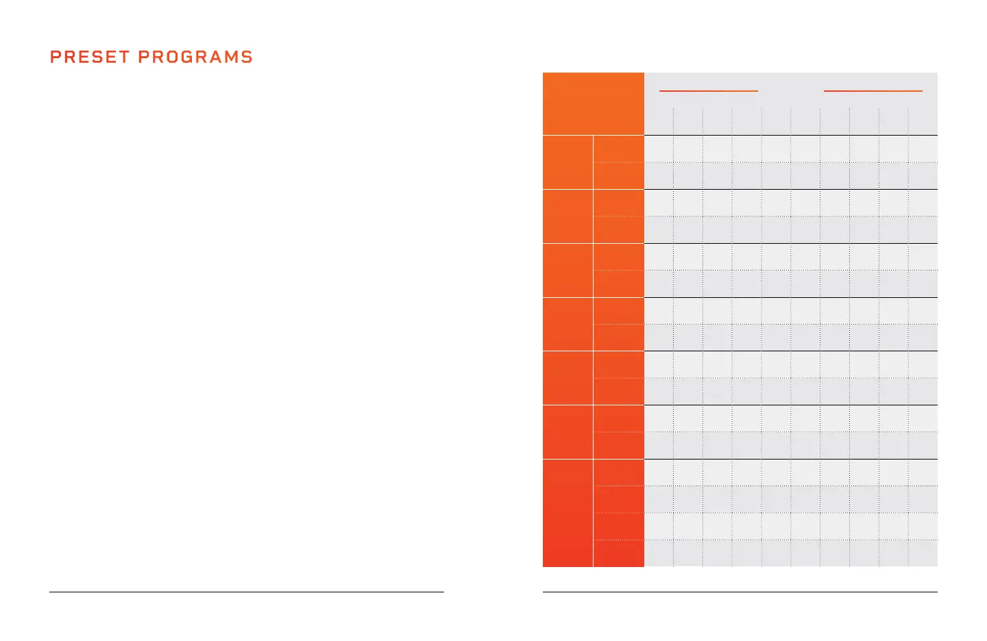 PRESET PROGRAM SPEEDS AND VIBRATION MODES