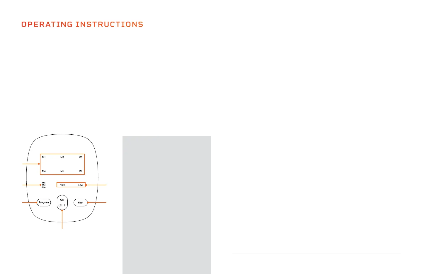 4. Heat Indicators: Indicators show the heat level selected, low or high.