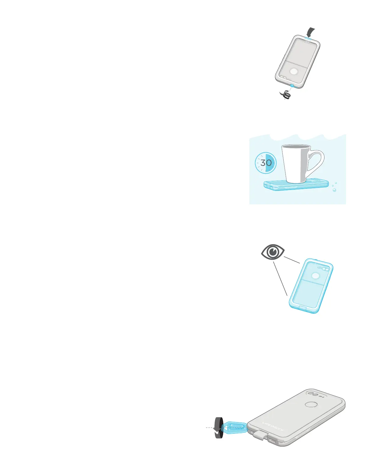 Immergi la custodia a faccia in giù in acqua per 30 minuti