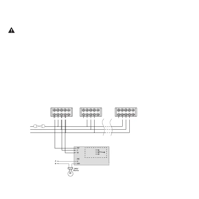 Connecting the 9V, SW and N terminals to the smoke alarm isolation relay LIFSAIR or LIFSAIRMB