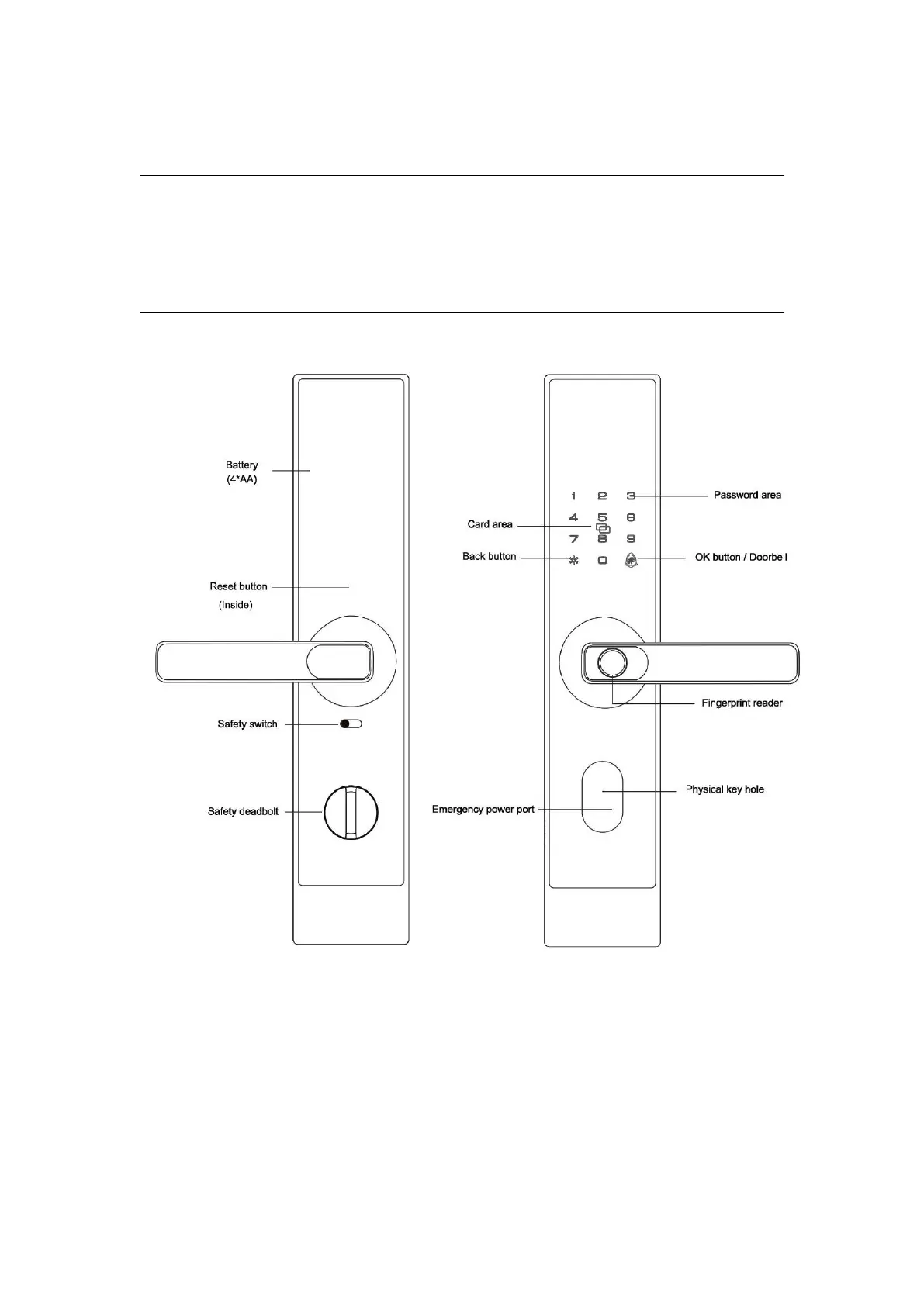 ⑥AA Battery x4 ⑦Installation hole diagram ⑧Installing lining plate ⑨instructions ⑩NFC card x2