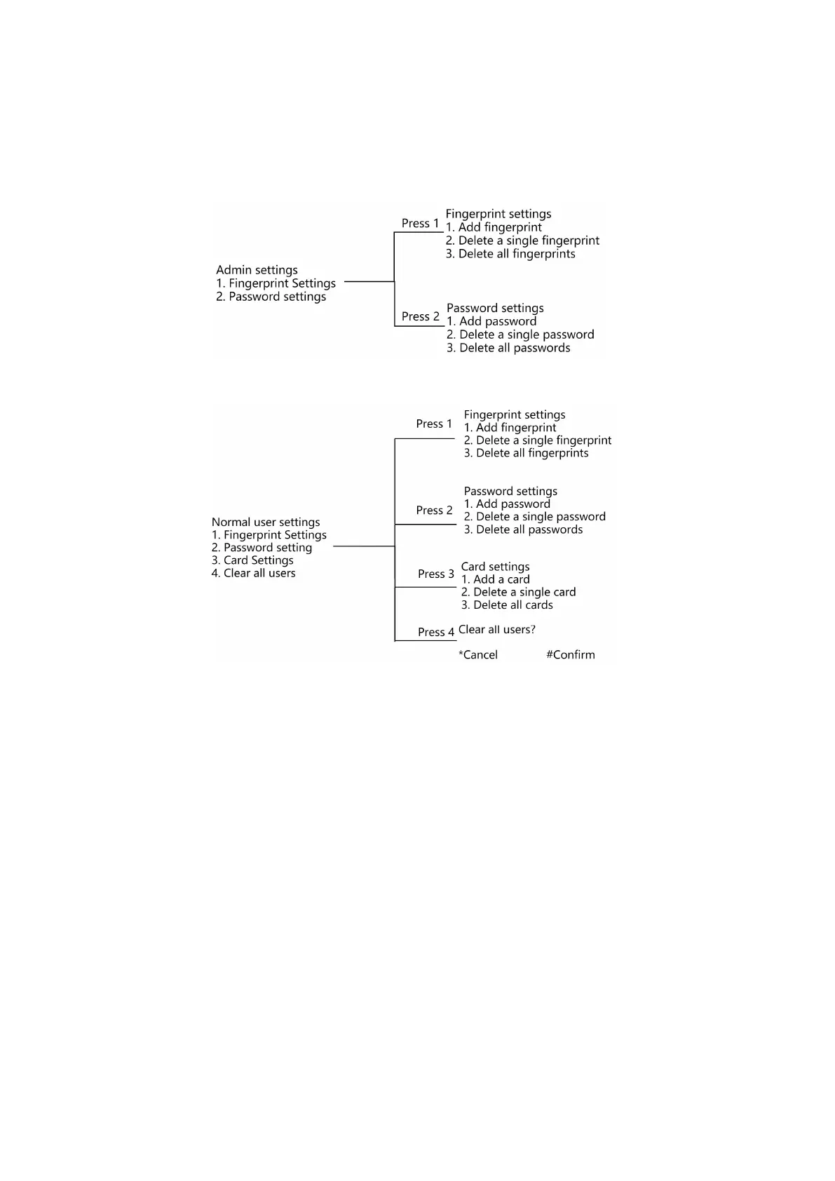 Press 2 to enter Normal user settings: