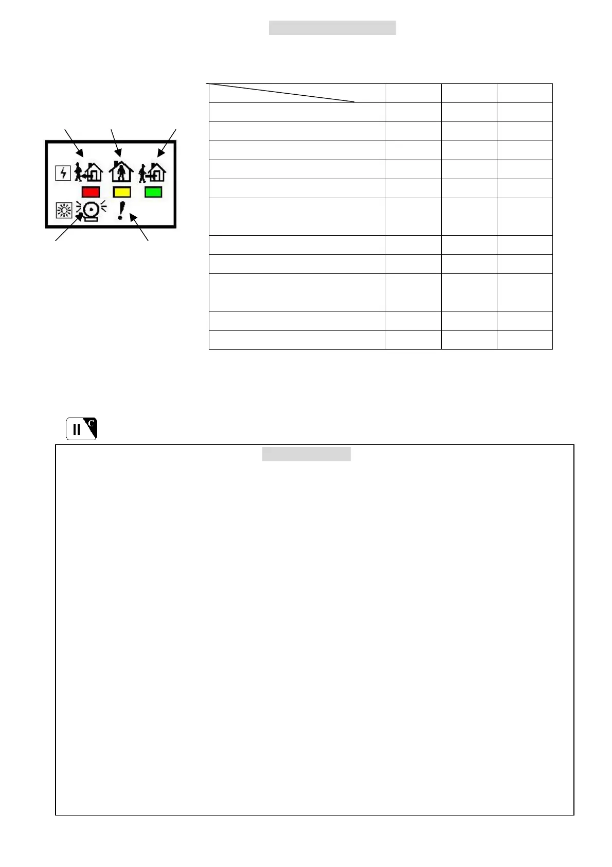 system operation mode and alarm/ warning status as listed in the following table.