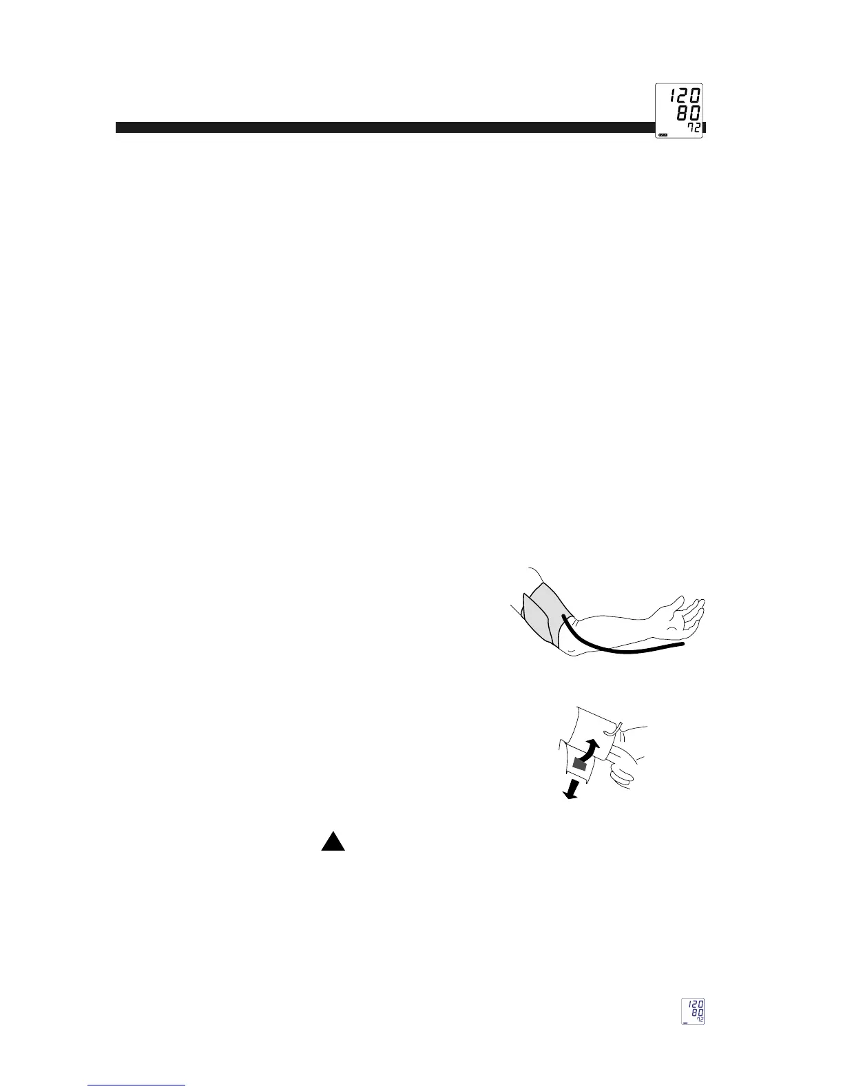 Remove constricting clothing and place cuff on bare arm.