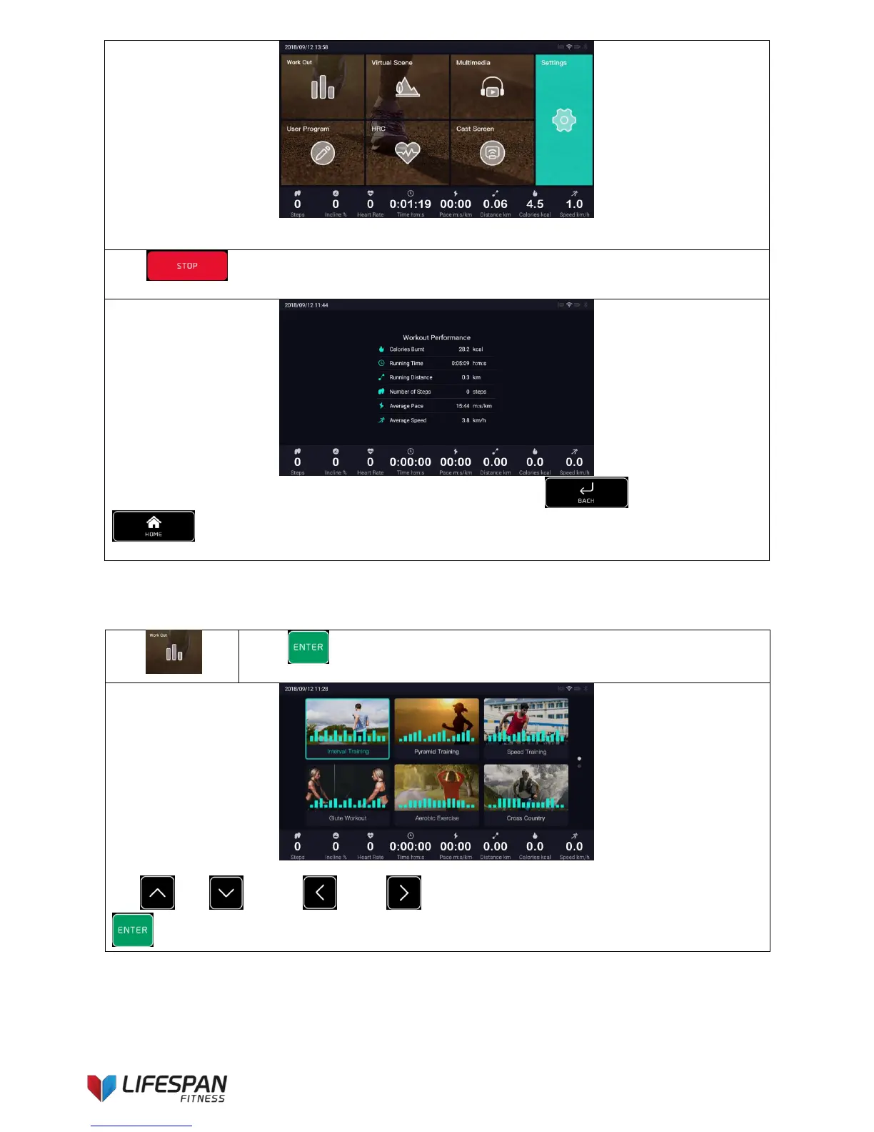 Use “UP”, “DOWN”, “LEFT”, “RIGHT” buttons to select a workout program, press