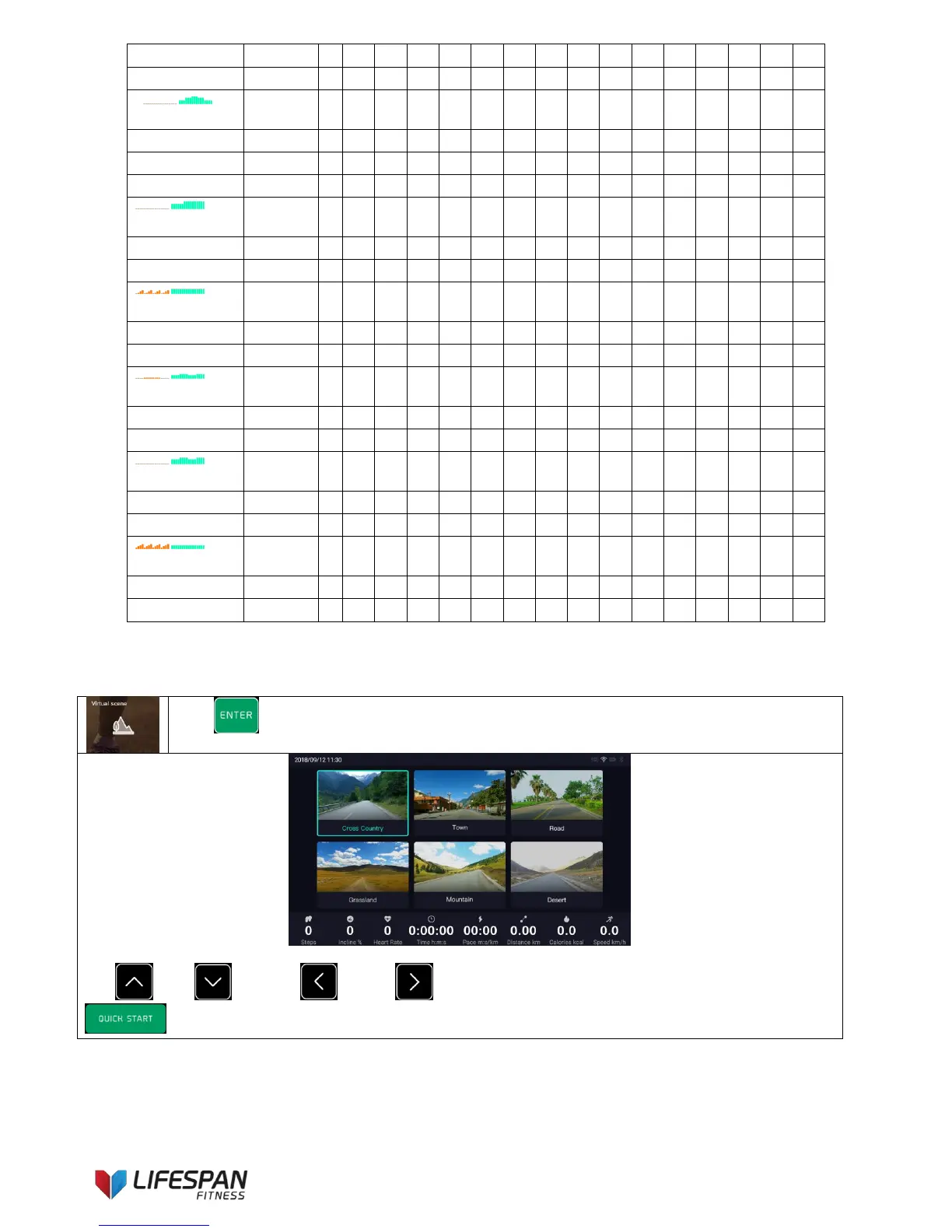 “QUICK START button to start the treadmill and run the selected virtual scene workout.