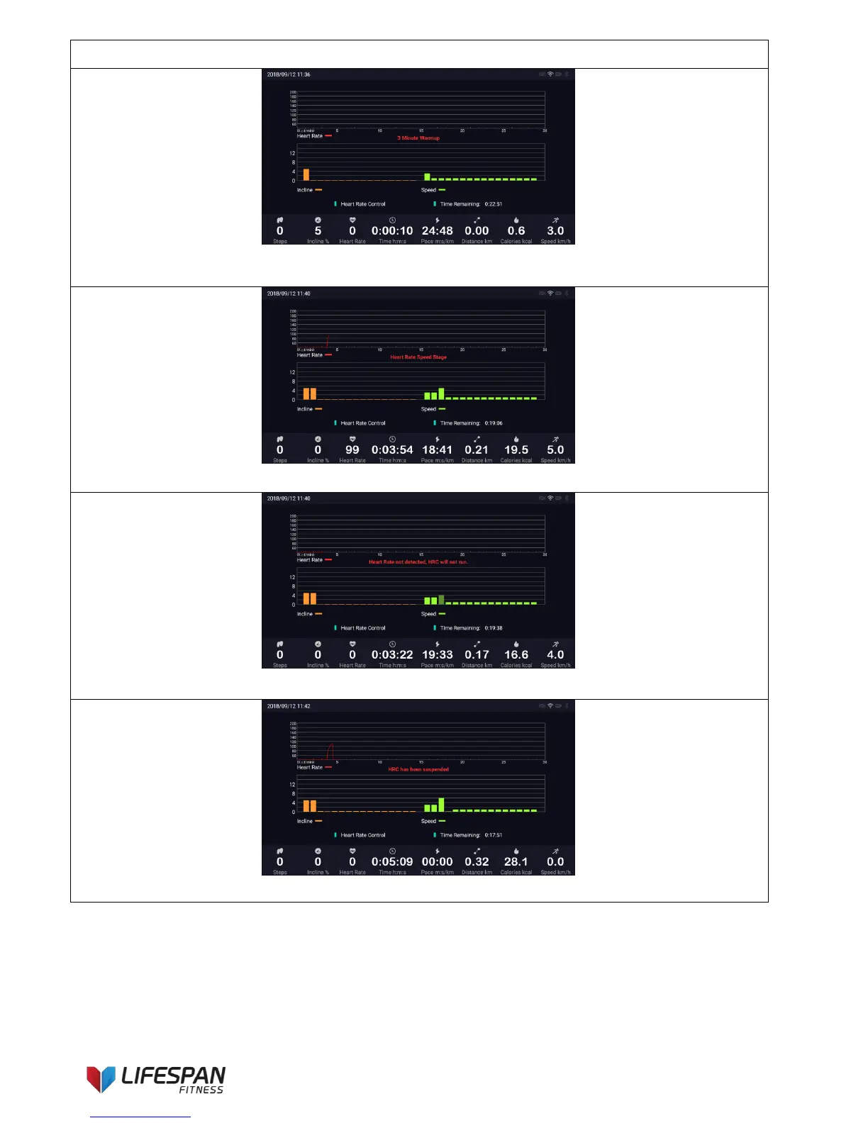 LifeSpan MARATHON - HRC Mode Example and System Prompts
