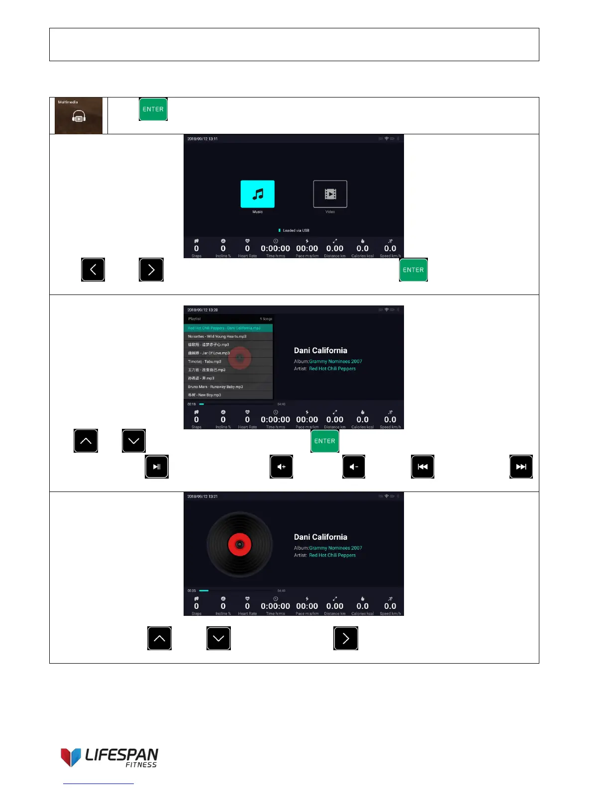 Use “UP”, “DOWN” buttons to select songs, press “ENTER” button to play music.