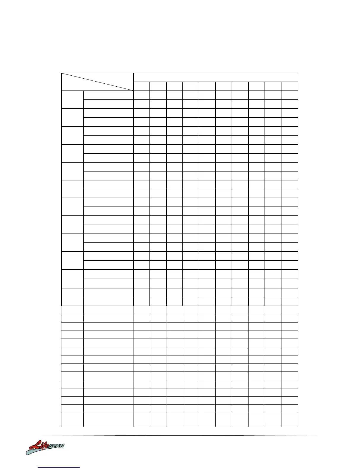 LifeSpan RHYTHM - Program Chart