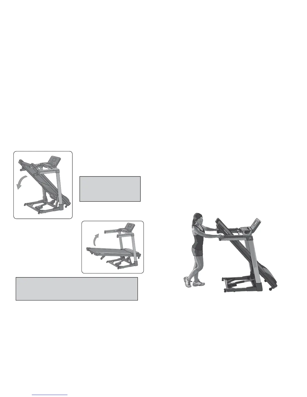 and folded position. This will place the treadmill onto its caster wheels,