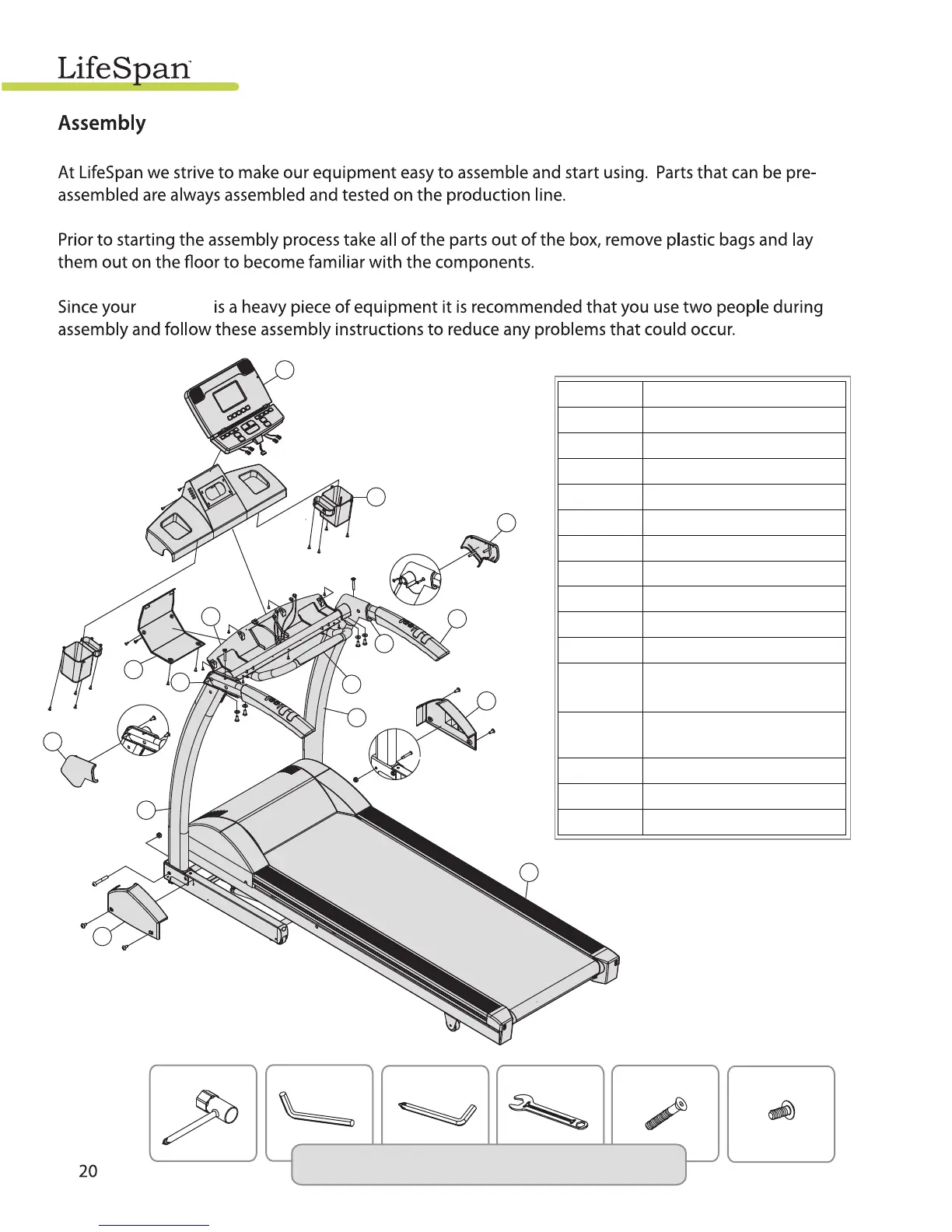 LifeSpan TR800 - Treadmill Assembly