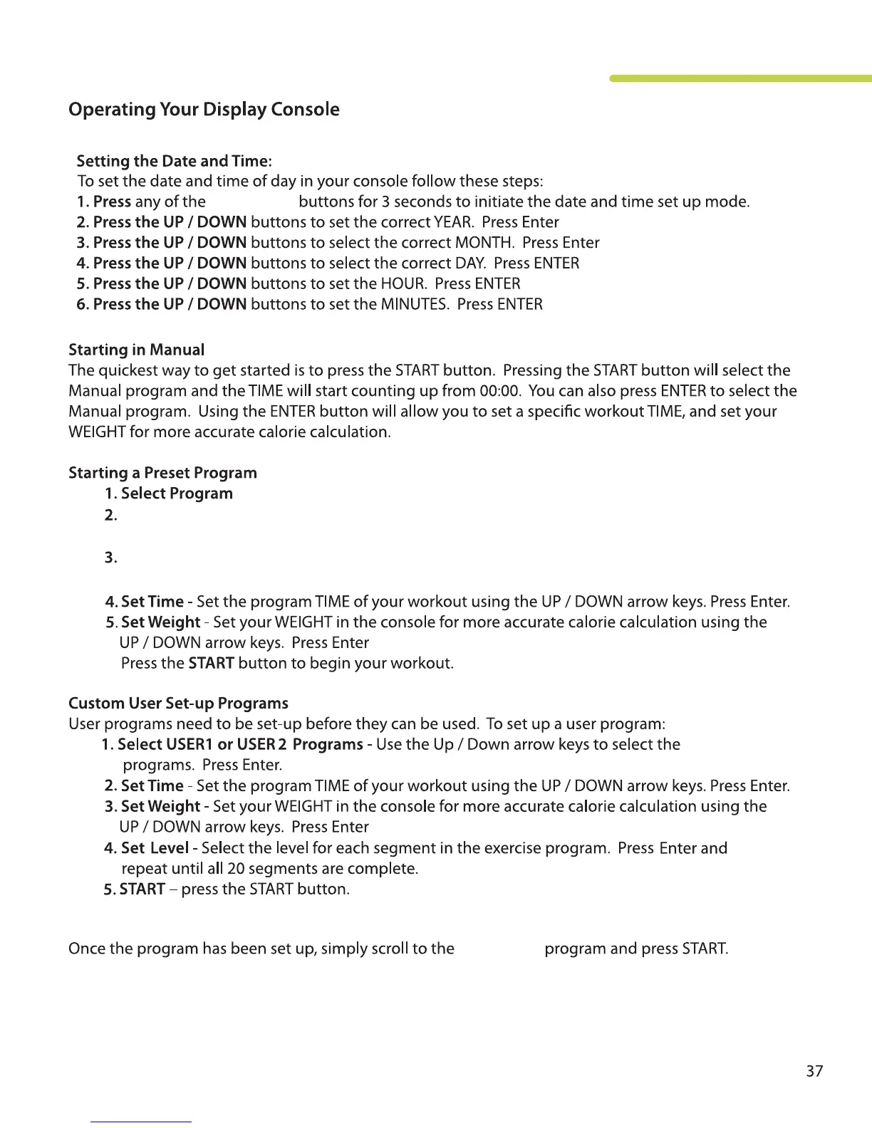 - Press the Incline or Speed up/down buttons to scroll to the desired program.
