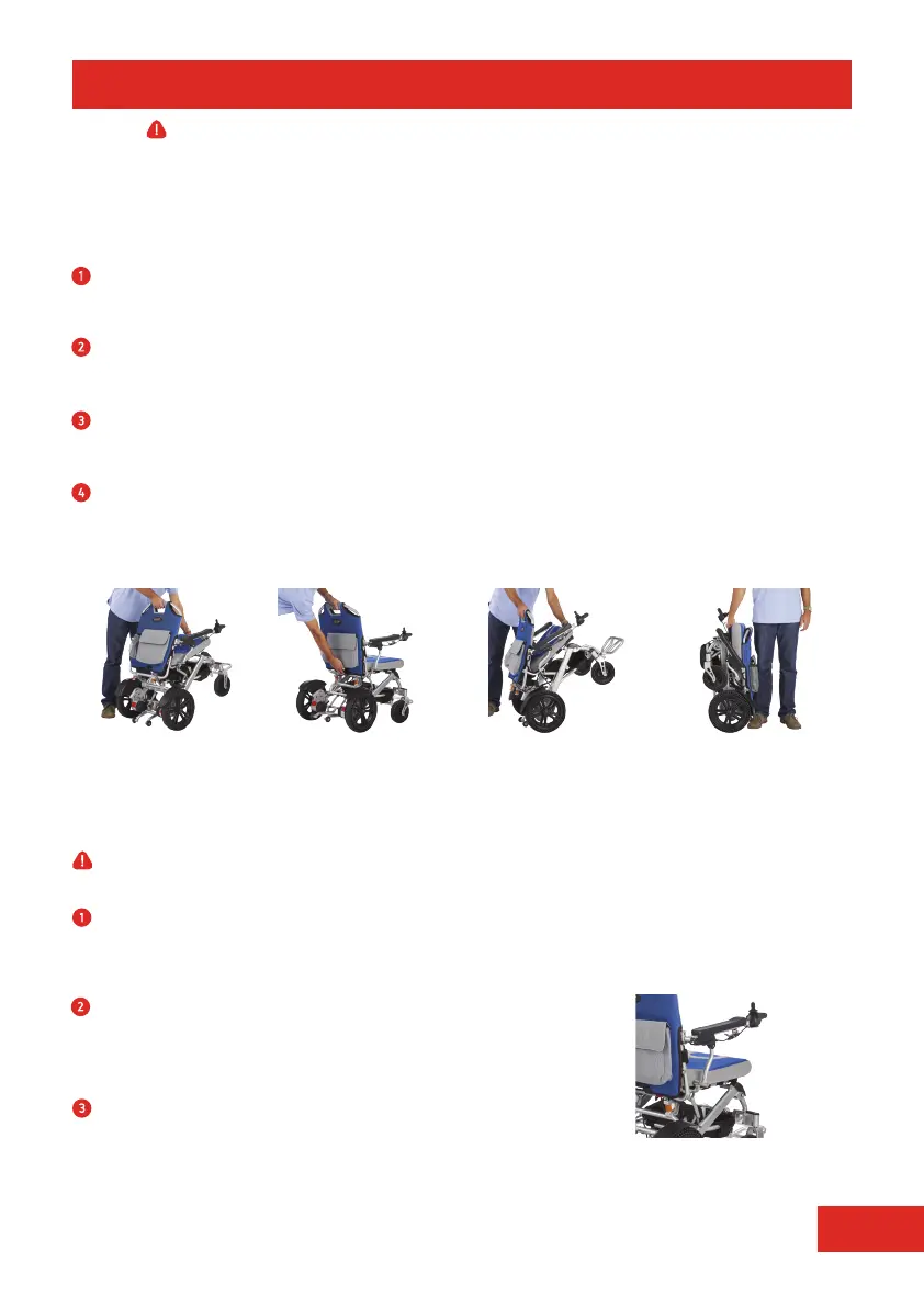 To fold, make sure the power chair is in power mode (See Motors on page 5) and pull