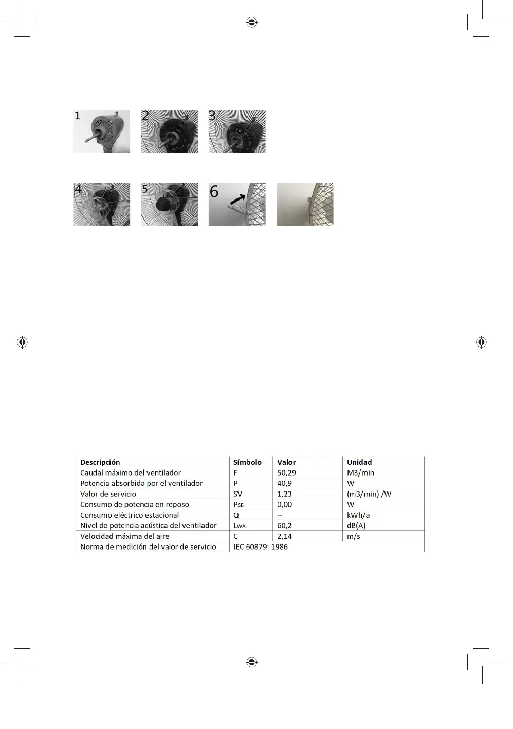 4. Coloque las aspas del ventilador (F) en el eje de metal, asegurando que queden