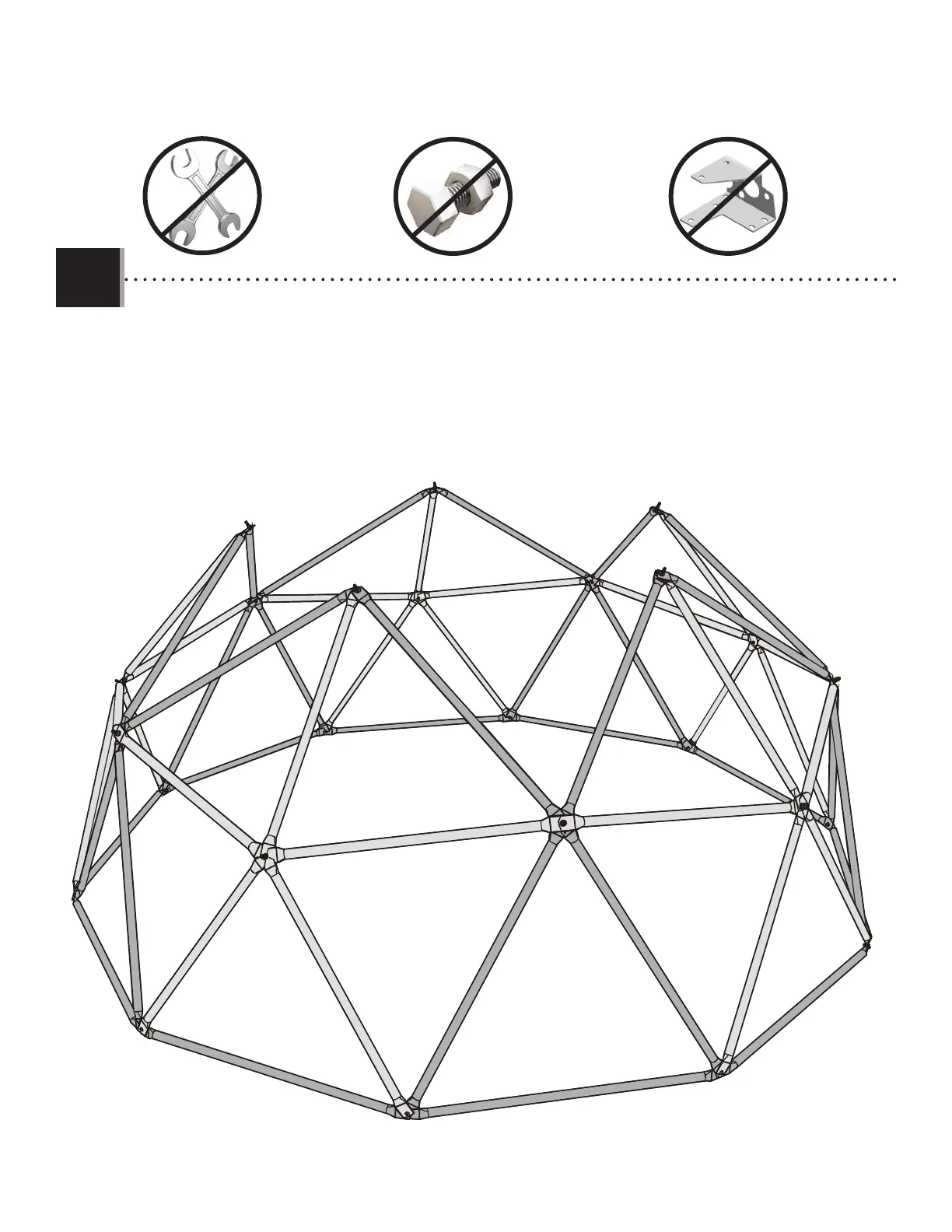 • Después de terminar los pasos 1.1 – 1.6, el domo de escalada resemblará la imagen siguiente: