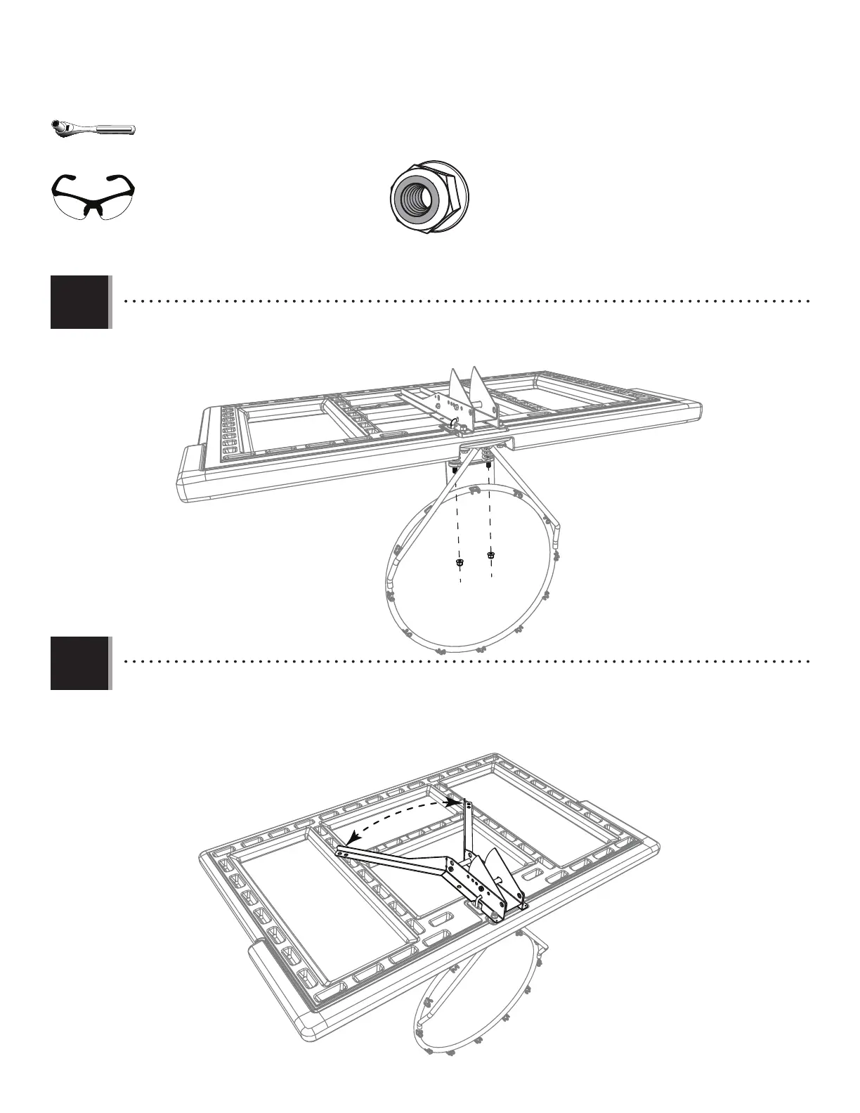 • Bend the backboard brackets outward and align the hole in each end with the holes in the backboard as indicated.