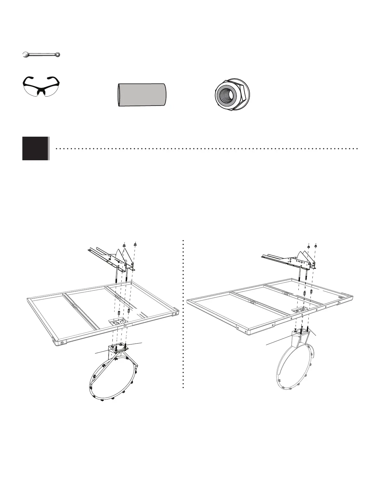 • Insertar los dos pernos del aro a través de los agujeros en el tablero. Deslizar un (1) espaciador (ACS) sobre cada perno. Colocar