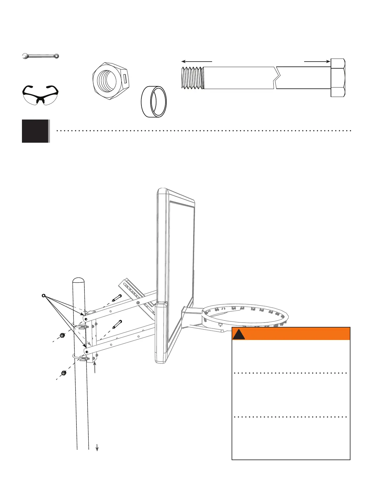 • All backboards mount to the pole mounting tube in the same way. Insert a spacer (FKG) between the mounting tube and each extension