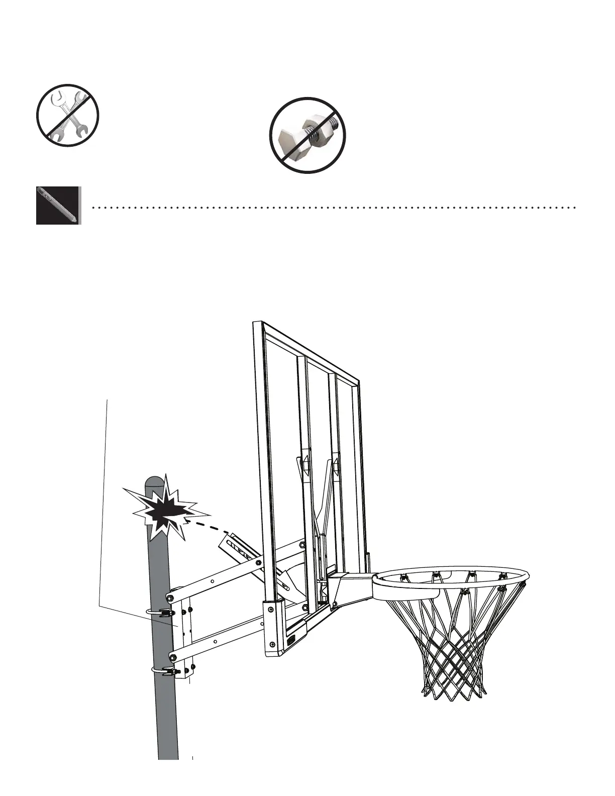 dunk latch will hit the pole when raised. Measure the pole to see if it is higher than 9' 4" (112") (284,5 cm) from