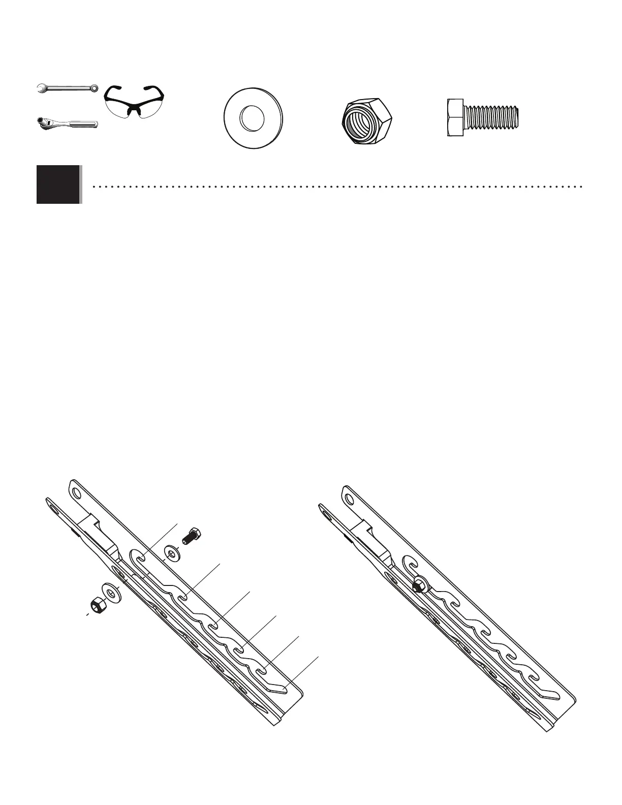 a. Insert the bolt (APJ) through a washer (ABD) and between the 9' 7" and 10' (≈292 and 305 cm) positions at either side of the