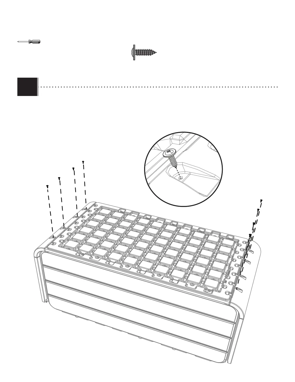 • Flip the deck box upside down. Secure the two side panels to the fl oor panel by inserting a screw (GJZ) through the