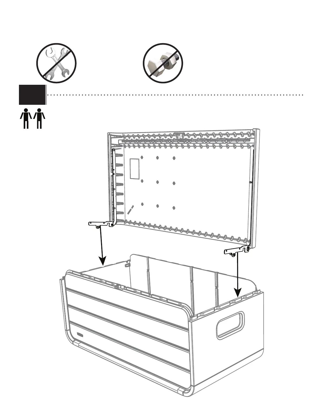 • Ouvrir les charnières à 90°. Mettre les charnières sur le panneau arrière comme indiqué.