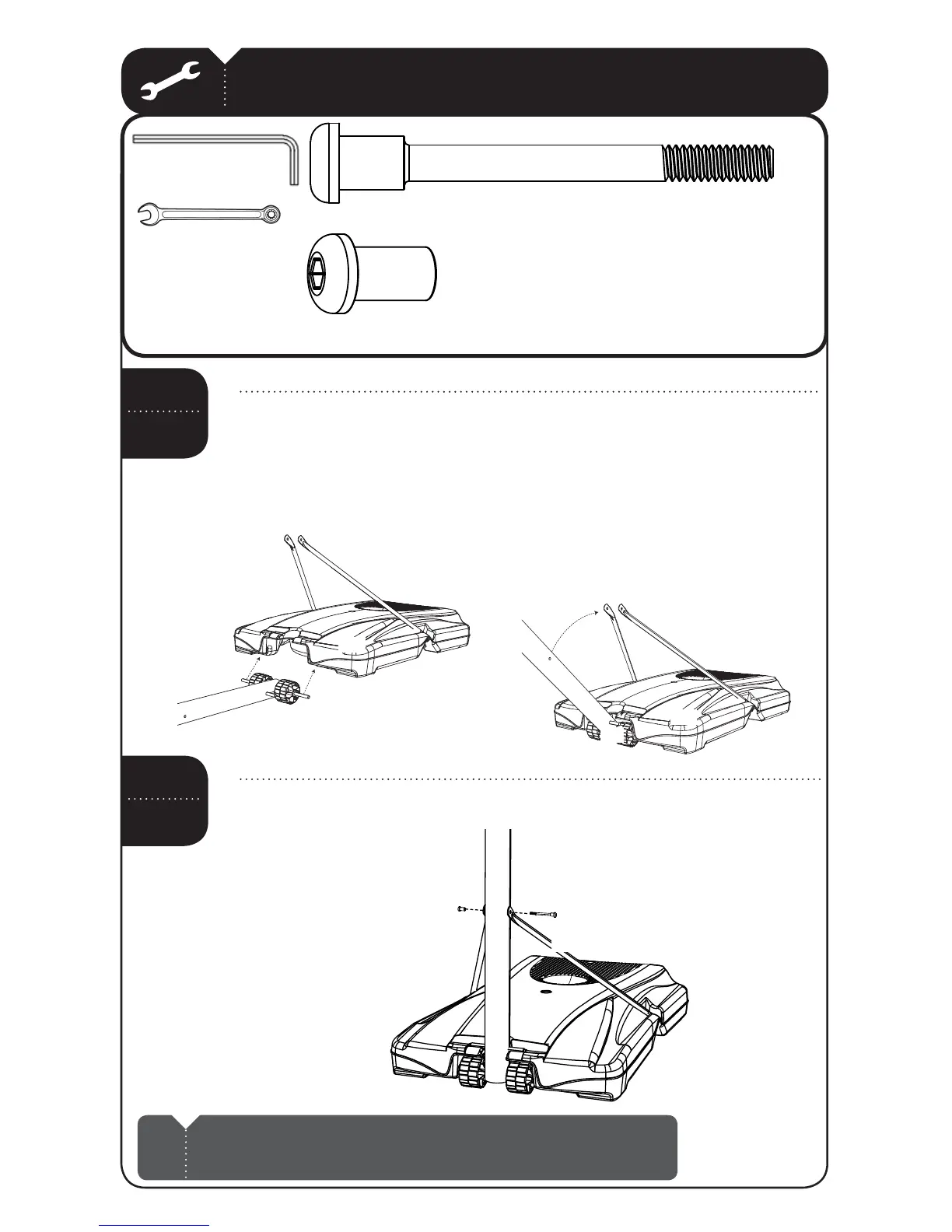 Axle snaps into the slots. Then rotate the Pole assembly upward so that