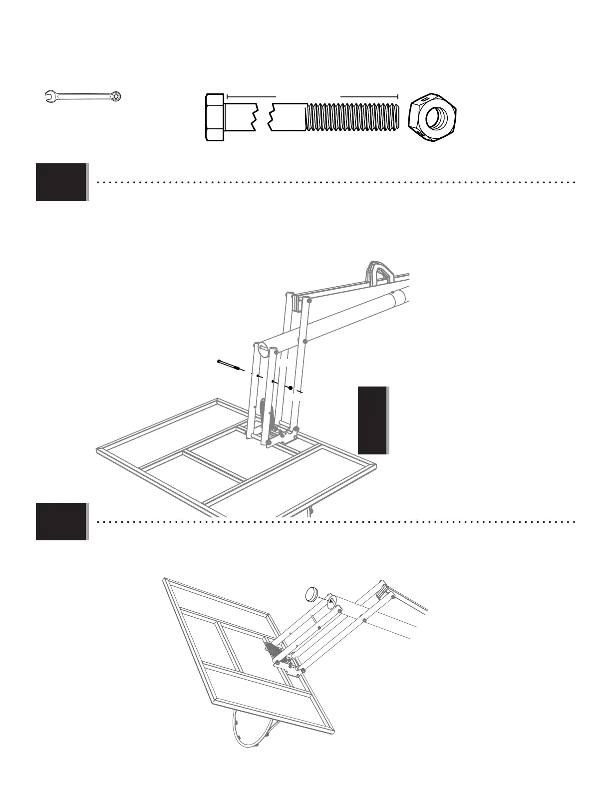 • Insert the hex bolt (AAZ) through the holes in the short extension arms (AKC) that are closest to the pole. Secure the bolt to