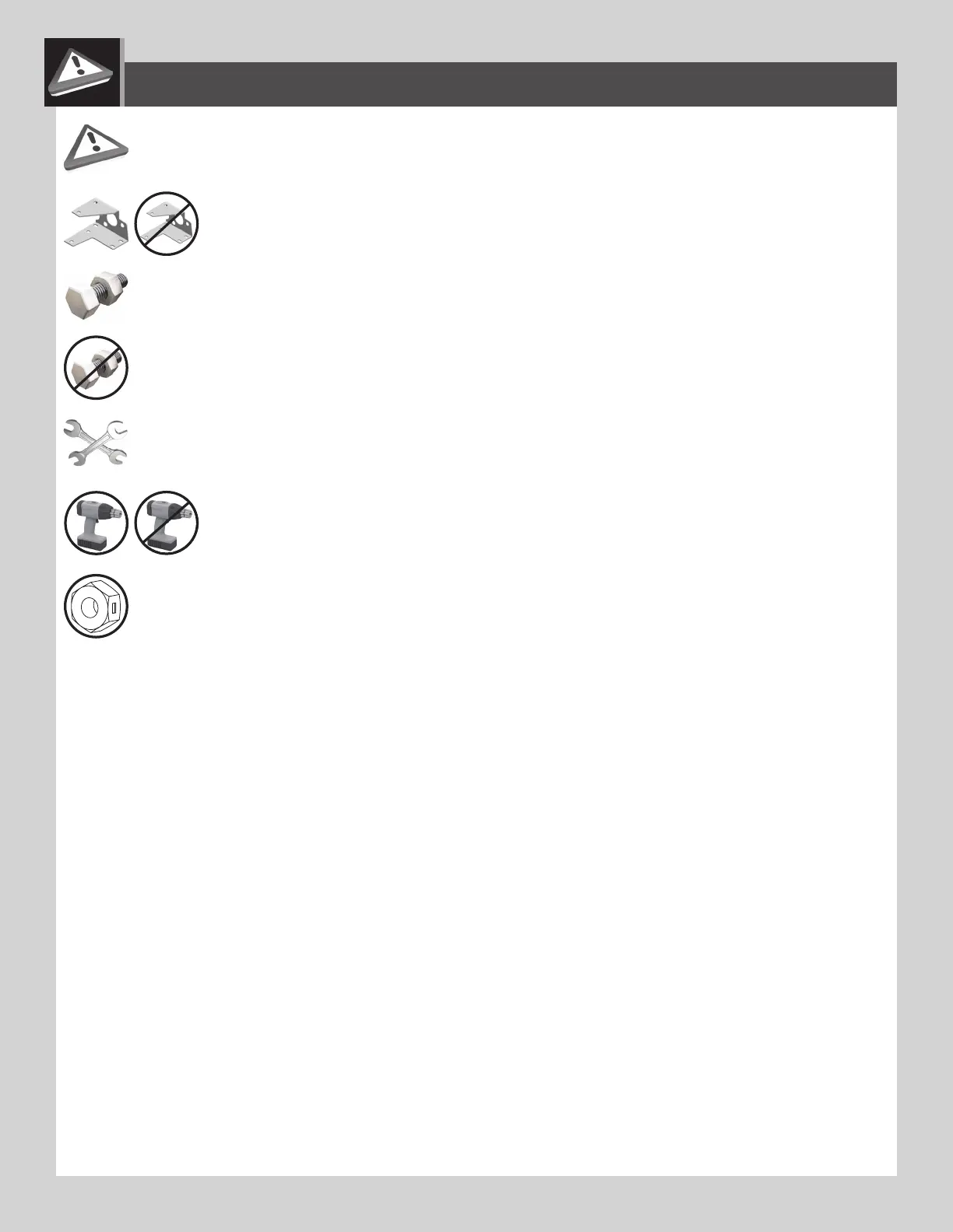 • Indicates to use/not use an electric drill for a specifi c step.