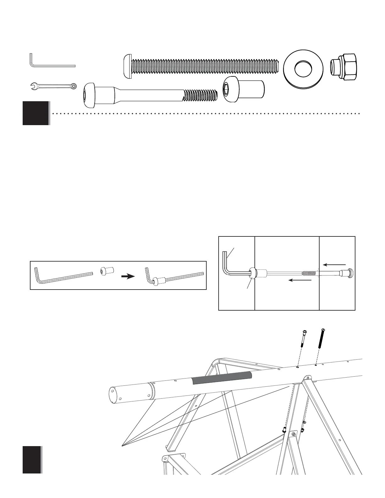 • Slide the Barrel Nut (BTS) onto the long side of the Allen Wrench (EEO). Now slide the Allen Wrench through one side