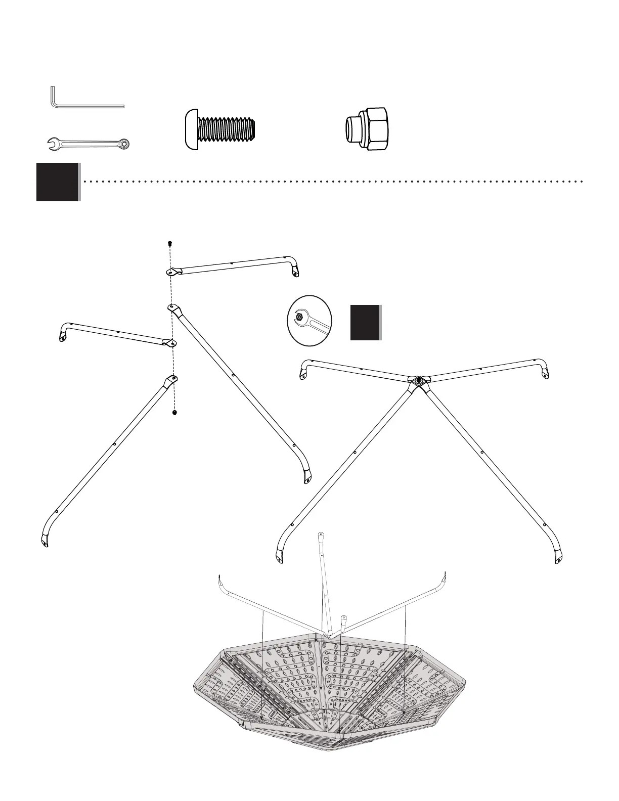 • Attach the Roof Supports (DXQ) in a raised “X” formation as shown.