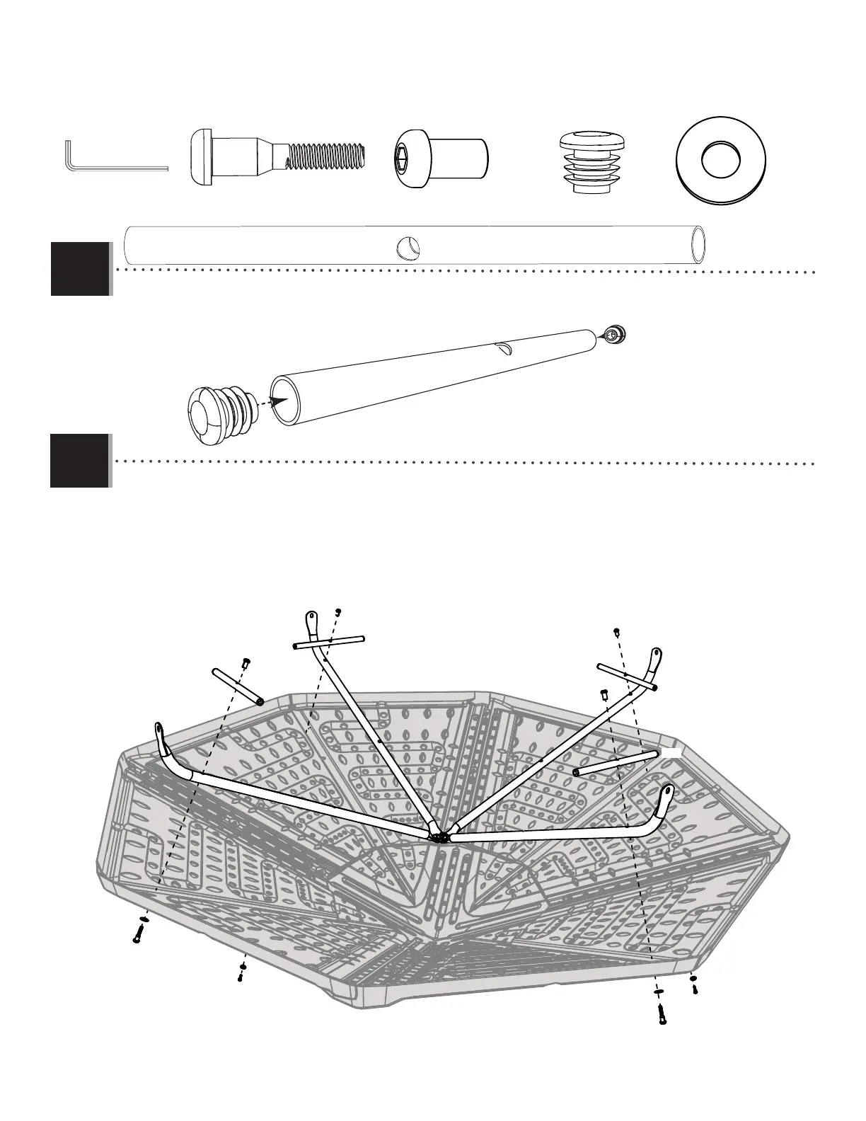 • Insert the End Caps (FAB) into the ends of the Support Tubes (FAA).