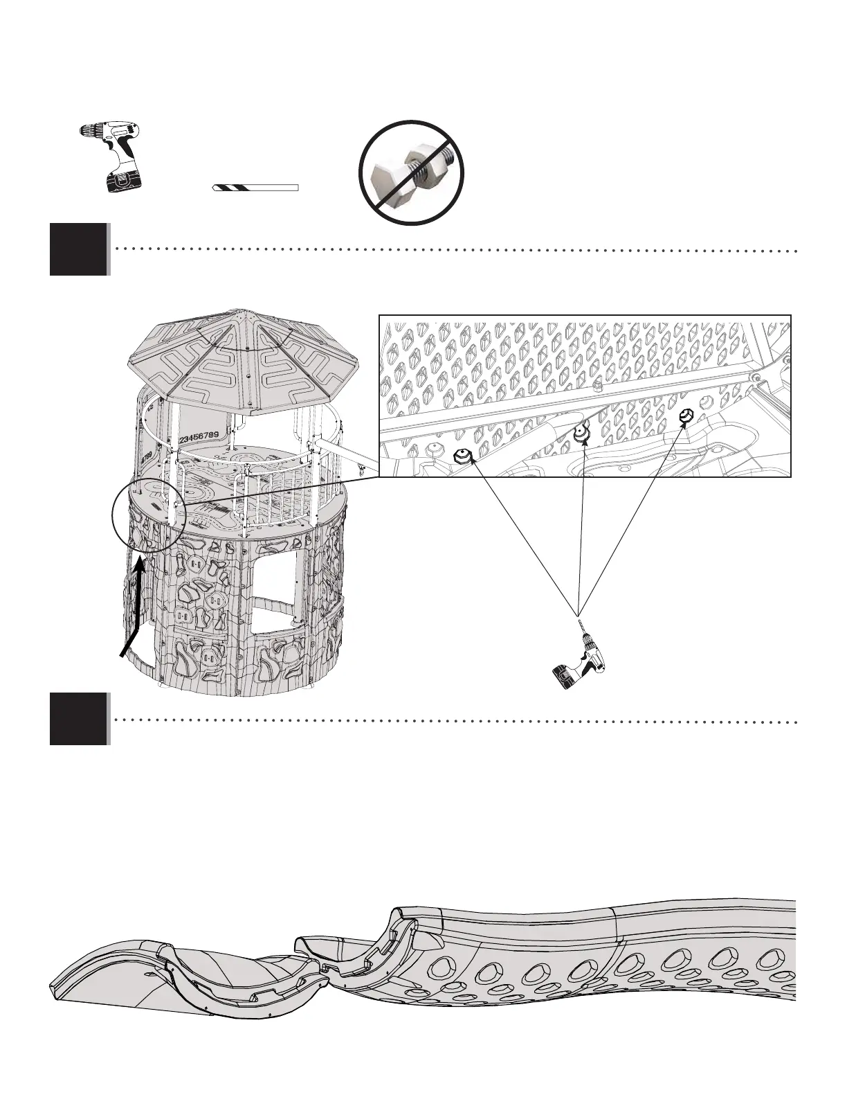 • Drill the holes from underneath the deck.