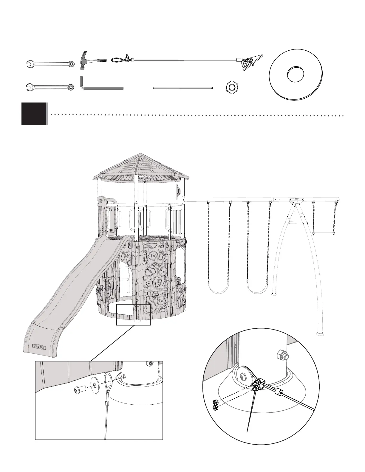 • Répéter les étapes précédentes pour ancrer le poteau de tour opposé au sol.