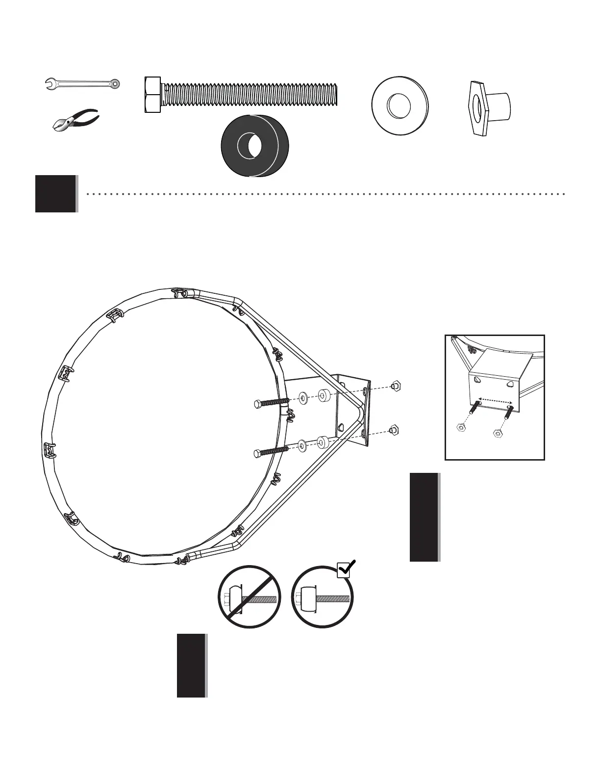 • Do not overtighten the hardware so much that the
