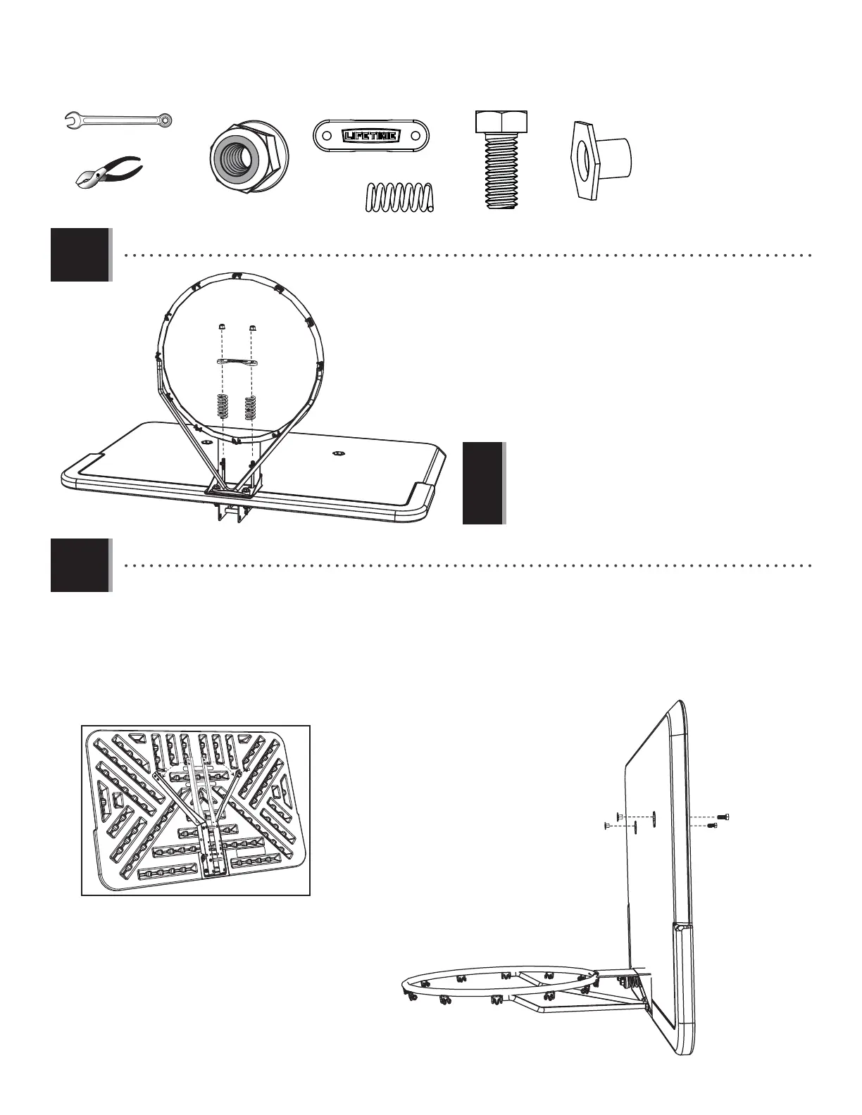 Backboard Brackets over the holes in the Backboard. Then securely fasten the Backboard Brackets to the